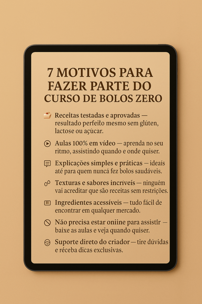 Acreditamos tanto na qualidade e no sabor das nossas receitas que você pode experimentar o curso “Bolos Zero Glúten, Zero Lactose e Zero Açúcar” sem nenhum risco.