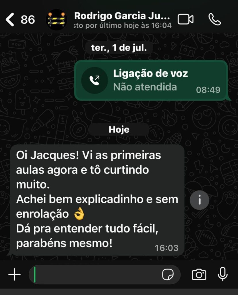 Sim! Você tem 7 dias de garantia para testar o curso. Se dentro desse prazo sentir que ele não é pra você, devolvemos 100% do seu investimento.